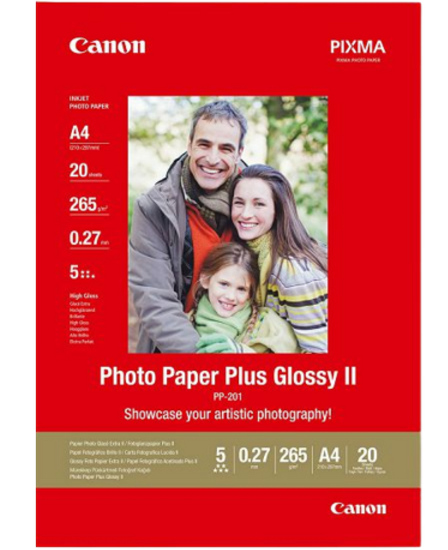 Canon Photo Paper Plus Glossy II gramaže 265 g/m2 savršen je fotopapir za ispis vrhunske kvalitete sa sjajnom završnom obradom. Pruža savršenu završnu obradu za digitalne fotografije i sve ponovne ispise.